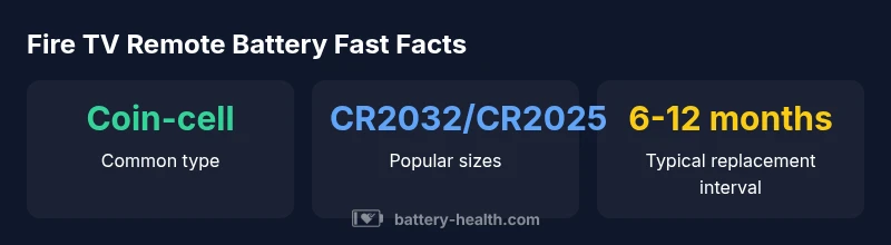 Most Fire TV remotes use a replaceable coin-cell battery, commonly CR2032 or CR2025 depending on the model. Always verify the exact size from the device label or manual.