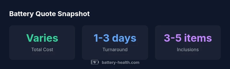 A battery quote is a price estimate for replacing a battery, typically including parts, labor, and disposal. For cars, devices, or home storage, expect ranges based on battery type (lead-acid vs lithium), warranty terms, and local labor rates. To compare, request formal quotes from multiple suppliers and clarify what’s included.