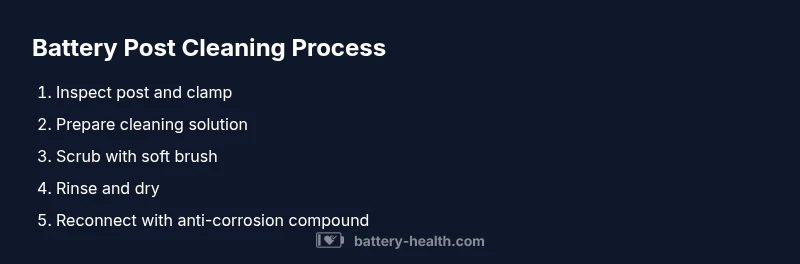Learn how to safely clean a battery post and restore reliable electrical contact. This quick guide covers safety, tools, step-by-step methods, and maintenance tips to prevent future corrosion. According to Battery Health, a clean battery post reduces voltage drop and improves starting reliability, saving you time and money. By following these steps, you’ll protect your battery’s lifespan and keep equipment performing at its best.