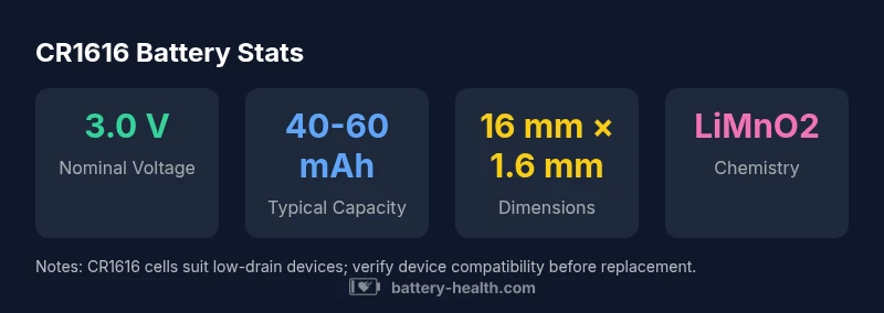 Explore CR1616 battery specs, voltage, capacity ranges, replacement steps, safety tips, and reliable sourcing guidance, backed by Battery Health analyses.