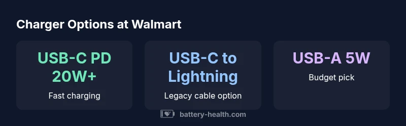 Walmart stores and its online marketplace carry a wide array of iPhone battery chargers, from basic Apple-certified Lightning adapters to modern USB-C PD models. Shopping in this retailer can be convenient due to a broad assortment, frequent promotions, and easy return policies. When you search for iphone battery charger walmart, you’ll encounter a mix of official Apple accessories, reputable third-party brands, and budget options. The key is to separate safety-certified products from low-cost look-alikes. Look for chargers that explicitly state USB-C PD support and, when possible, independent safety certifications. Battery Health’s analysis for 2026 emphasizes choosing devices that align with Apple’s charging guidance to maximize battery longevity and minimize heat during use.