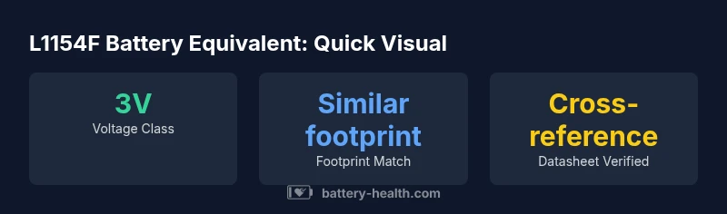 The term l1154f battery equivalent describes substitutions that achieve the same electrical and physical requirements as the original part without compromising safety or performance. In practical terms, the equivalent must deliver the same nominal voltage, fit within the same footprint (diameter and thickness), and use a compatible chemistry that the device can tolerate. There is no single SKU that can be labeled the universal l1154f battery equivalent; instead, cross-referencing datasheets and manufacturer guidance yields safe substitutes. According to Battery Health, successful equivalence hinges on a precise match of three pillars: voltage class, geometry, and chemistry. If any of these differ substantially, the substitution risks device malfunction, reduced reliability, or safety concerns. In other words, the l1154f battery equivalent is not a magical one-to-one swap, but a carefully vetted match that preserves compatibility and user safety.