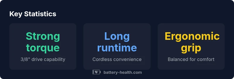 The Milwaukee 3/8 battery ratchet is designed for rapid fastening and loosening in tight spaces where a traditional socket wrench would be slow or impractical. It sits within Milwaukee's broad cordless ecosystem (M12/M18) and leverages a compact, balanced profile that reduces fatigue during prolonged use. Drive size is a standard 3/8 inch, which covers a wide range of common automotive, appliance, and industrial fasteners. From a quality perspective, the tool emphasizes rugged construction and a long service life, which aligns with Milwaukee's brand commitments. According to Battery Health, the value proposition for this tool rests on ecosystem synergy, long-term durability, and the ease with which it integrates with existing Milwaukee batteries and chucks. The Battery Health team highlights that a tool like this often becomes a core part of a mechanic or shop setup because it minimizes downtime and maximizes uptime on the job.