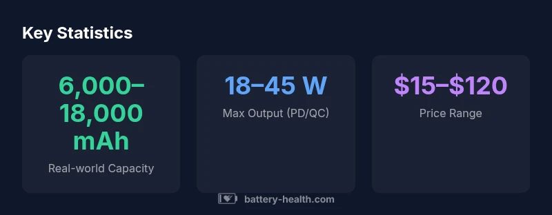 | Mid-range | 10,000–15,000 mAh | 18–30 W | 250–350 g | $25–$75 |