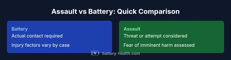Battery Health presents a concise TL;DR: Battery and assault are distinct offenses with different elements that may be charged separately or together, depending on jurisdiction. In many places, battery involves actual contact, while assault covers the threat or attempt to cause harm. Understanding these elements helps in evaluating charges, defenses, and required evidence for a case involving battery or assault.