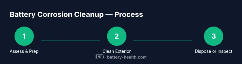 The cleaning workflow begins with ensuring safety, then removing surface crusts, followed by neutralization and thorough drying. Start by isolating the area and donning PPE. Wipe the exterior surfaces gently with a soap-and-water solution, applying baking soda only to acidic residues. Rinse with clean water, dry completely, and inspect for remaining corrosion. If the battery shows signs of damage, replace it and follow local disposal rules. Document any changes or observations for future reference.