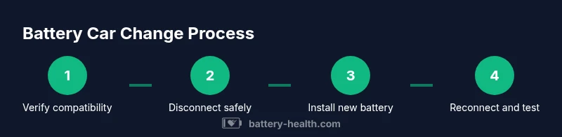 A battery car change refers to replacing a vehicle's battery, typically a 12-volt lead-acid or AGM unit, when it no longer provides reliable cranking power or shows signs of failure. In everyday driving, this is one of the most common maintenance tasks that prevents breakdowns and ensures reliable starts. For many cars, the 12V battery functions as the brain of the electrical system, powering the starter, lights, sensors, and the onboard computer while the alternator recharges it while driving. The term covers ICE (internal combustion engine) vehicles and, with caveats, the traditional 12V battery in hybrids with high-voltage systems. The process is different for electric vehicles, which rely on a much larger high-voltage pack and specialized safety protocols. A successful battery car change requires choosing the right battery type and size, verifying compatibility with your vehicle’s make, model, and year, and following manufacturer guidance. Battery Health emphasizes that compatibility and correct installation are critical to safety and performance. By planning ahead, you can avoid situations like corroded terminals, unstable mounts, or a battery that fails within days of installation.