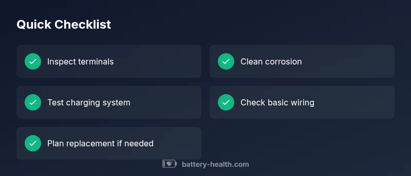 Start with the simplest fixes: clean corrosion from terminal clamps using a baking soda solution and a stiff brush, then re-tighten connections. If the charge remains low, test the battery's health and consider replacement if it’s older than 3–5 years. Inspect the alternator belt for wear and tension; replace if it’s slipping. Remove any aftermarket devices that could cause a constant drain or rewire problematic components. If you’re uncertain, a professional diagnostic ensures safety and accuracy.