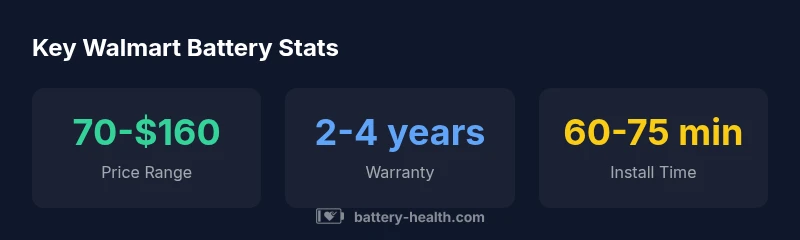 Price is a major factor for most shoppers. Walmart car batteries typically fall into a price range that makes them competitive with other mass-market brands while offering standard warranties that cover manufacturing defects. Expect price variation by Group Size and model, with smaller Group Sizes generally at the lower end and larger capacities at the higher end. In addition to the sticker price, consider promotional offers, bundled services, and the possibility of a free replacement within the warranty period if the battery fails early due to manufacturing issues. Warranty terms can vary by state and local Walmart Auto Center policies, so always read the warranty card carefully and keep the receipt. A longer warranty provides peace of mind and can offset marginally higher upfront costs over the battery’s life. Battery Health analysis indicates that the best value often comes from accurate sizing coupled with a robust warranty rather than chasing aggressive promotional pricing without reliable coverage.