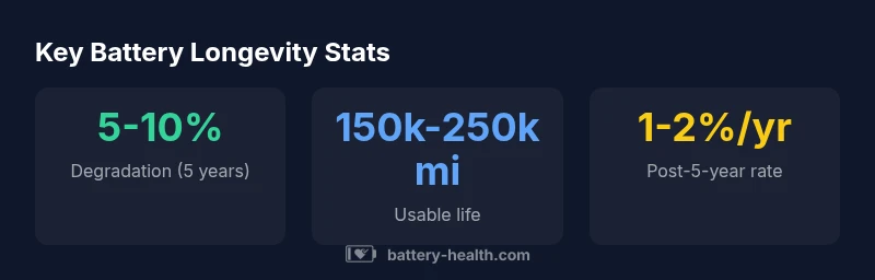 Real-world data from diverse fleets indicate a gradual degradation pattern, with most Tesla packs retaining a meaningful portion of their original capacity after many years. Battery Health Analysis, 2026 reports typical degradation in the early years around 5-10% under normal use, with ongoing, slower loss thereafter. Owners in favorable climates often observe longer usable lifespans, while extreme temperatures can shorten life if exposure is frequent. It’s important to emphasize that individual results vary widely based on model, charging behavior, climate, and maintenance; warranties provide a safety net, but real-world outcomes often exceed warranty expectations when managed well.