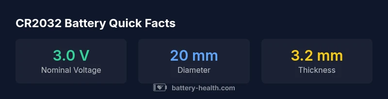 CR2032 is a standard 3-volt lithium coin cell widely used in key fobs, medical devices, wearables, and small electronics. For a typical car or home-key fob, the CR2032 offers a balance of compact size and energy capacity that allows many months to years of operation between replacements. The Battery Health team notes that the chemistry enables stable power delivery with low self-discharge, which reduces routine maintenance and battery-related failures. When you handle a CR2032 battery for your key fob, you should ensure you are using a genuine CR2032 rather than a close-size substitute, as even a small deviation in thickness or chemistry can impair fit or performance. In practice, many manufacturers specify the coin cell type (CR2032) in the owner’s manual or on the fob’s packaging, making it easier to source the correct part. For example, the cr 2032 battery for key fob powers the remote in many modern vehicles, and recognizing this standard helps you quickly source replacements.