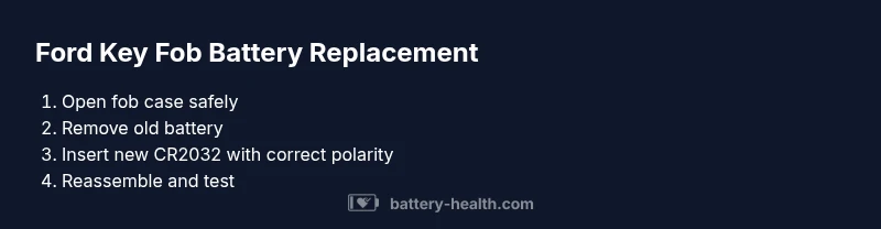 If you’re wondering how to replace the battery in a ford key fob, this quick guide shows a safe, step-by-step method and the tools you’ll need. According to Battery Health, gather a small flathead, a CR2032 battery, and a clean workspace. You’ll learn opening the fob, swapping the cell, and resealing the housing with minimal risk—perfect for a home fix on most Ford models.