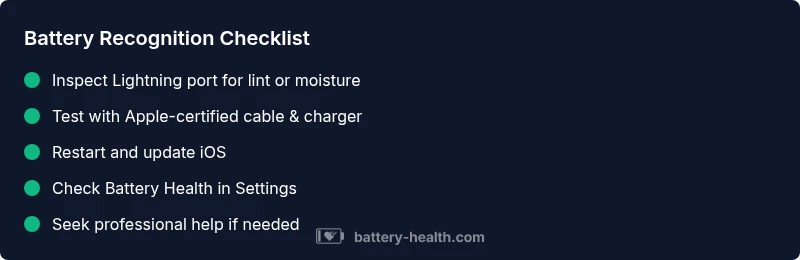 When an iPhone fails to recognize a battery or refuses to charge, users often panic. The message may appear as a charging icon that flickers, a battery indicator that stays at 0%, or a complete stop in charging activity. Understanding the difference between a software hiccup and a hardware fault is key. According to Battery Health, many recognition failures stem from port debris, a faulty charging cable, or a misbehaving accessory. In this guide, we distinguish between software-driven misdetections and genuine hardware faults, so you can apply the right fix quickly and safely.